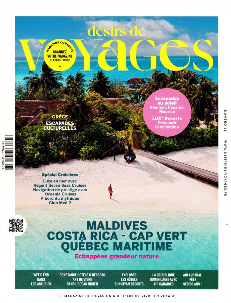 Désirs de Voyages est un magazine de voyages haut de gamme et d’art de vivre, dont la vocation est à la fois de faire rêver ses lecteurs, mais également de leur faire découvrir des destinations, tout en leur fournissant toutes les informations utiles à l’organisation de leur voyage, grâce au guide pratique qui accompagne chacun des reportages.
